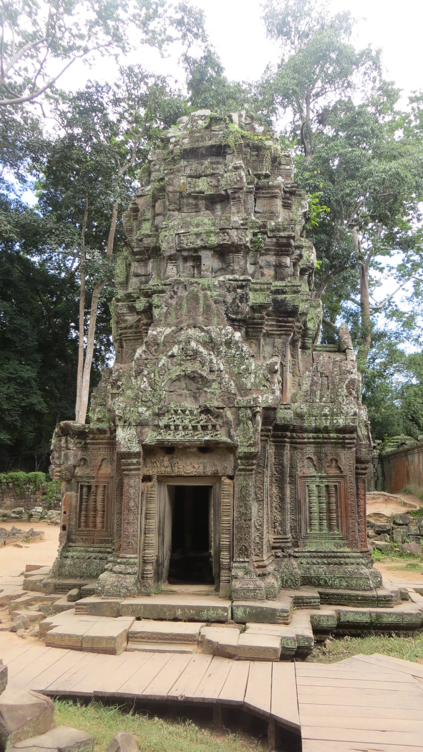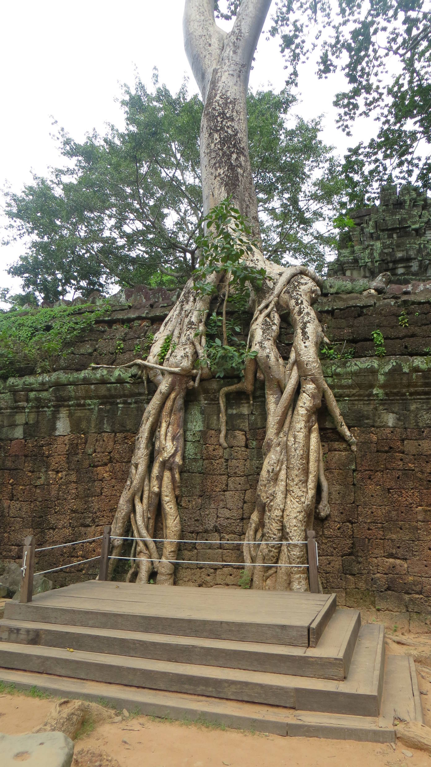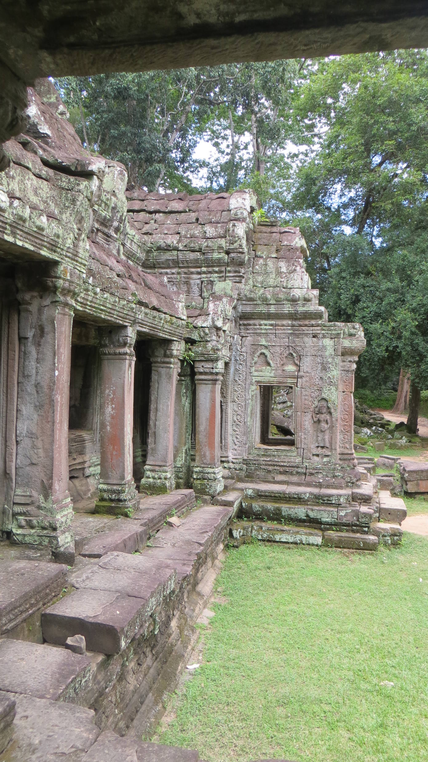 La primera jornada de templos la terminamos en el Banteay Kdei, otra gran estructura con muros de 500 metros de largo y una torre central. Es un templo muy pintoresco porque también se encuentra en un estado semirruinoso con troncos y raíces de árboles emergiendo entre las piedras. Y está menos concurrido que el Ta Prohm.