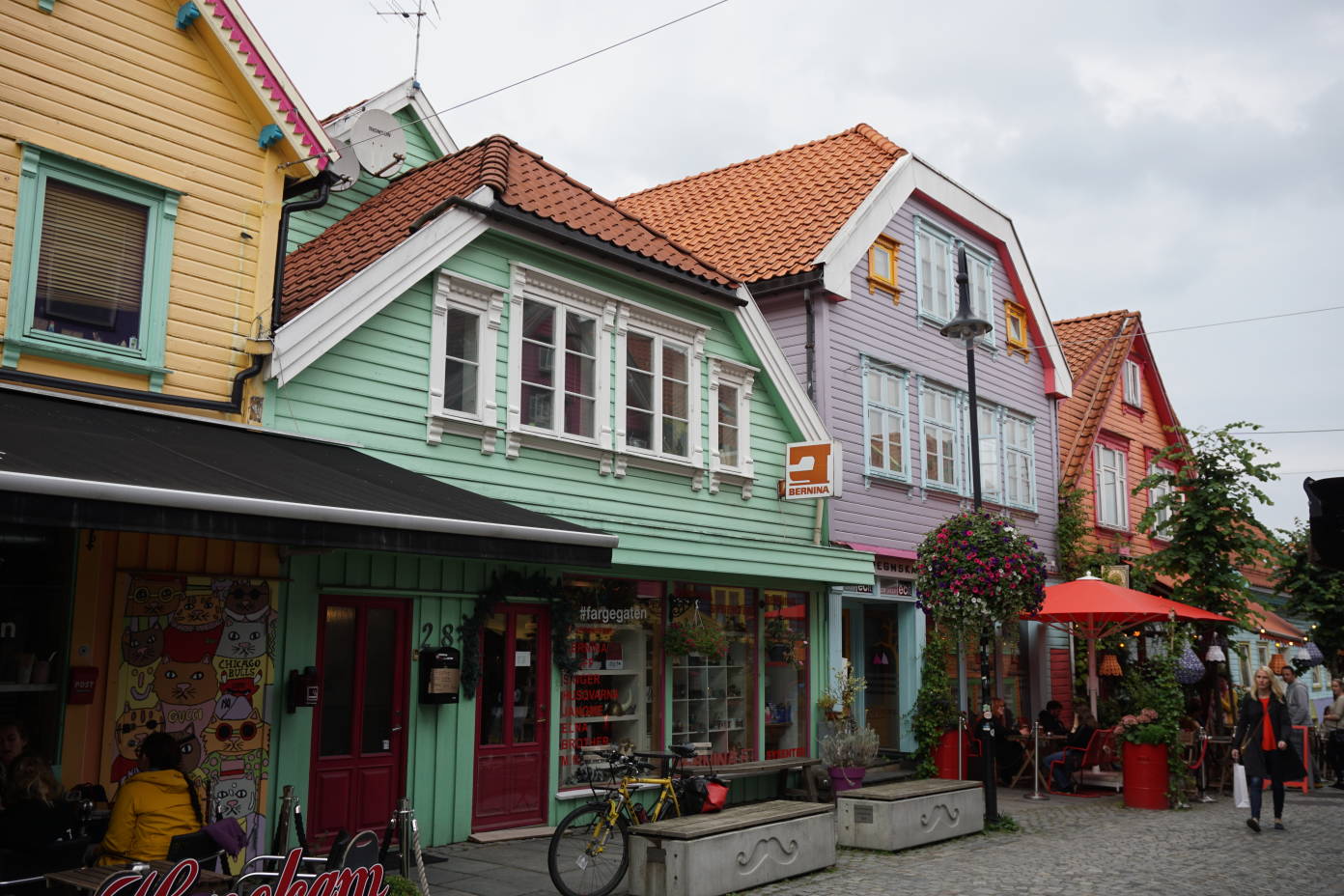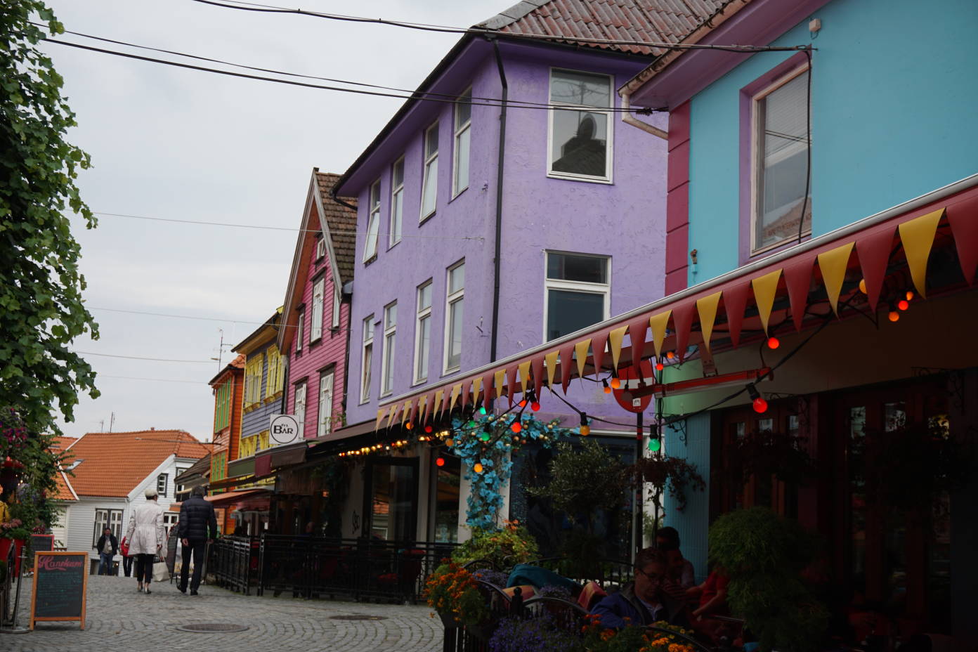 Comenzamos el día paseando por el muelle de Stavanger, disfrutando de las vistas del puerto y la ciudad. Decidimos hacer una parada en un Burger King frente al muelle, ya que aún no habíamos comido. Necesitábamos algo rápido y económico. Después de reponer energías, nos dirigimos al centro histórico y nos perdimos por sus calles empedradas. Llegamos a Øvre Holmegate, también conocida como Holme Alta en noruego. Esta zona es vibrante y colorida, conocida como el «Notting Hill noruego». Sus casas de colores y establecimientos pintorescos la hacen única. Es un lugar ideal para hacer fotos, explorar tiendas locales, cafés y galerías de arte.