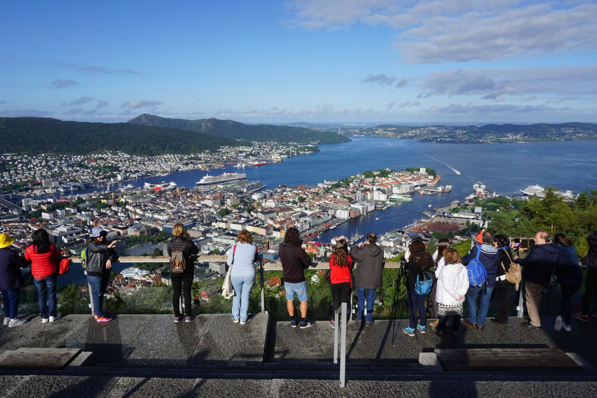 Amanece un día soleado en Bergen, ¡y por fin no llueve! Aprovechamos para desayunar en el hotel y tomar un taxi hacia el Monte Floyen, uno de los lugares más emblemáticos de la ciudad. El monte, a 320 metros sobre el nivel del mar, ofrece unas vistas panorámicas impresionantes de Bergen, sus fiordos y las montañas circundantes. Para llegar a la cima, compramos los tickets para subir en el funicular, que opera de 07:30 a 00:00 horas.