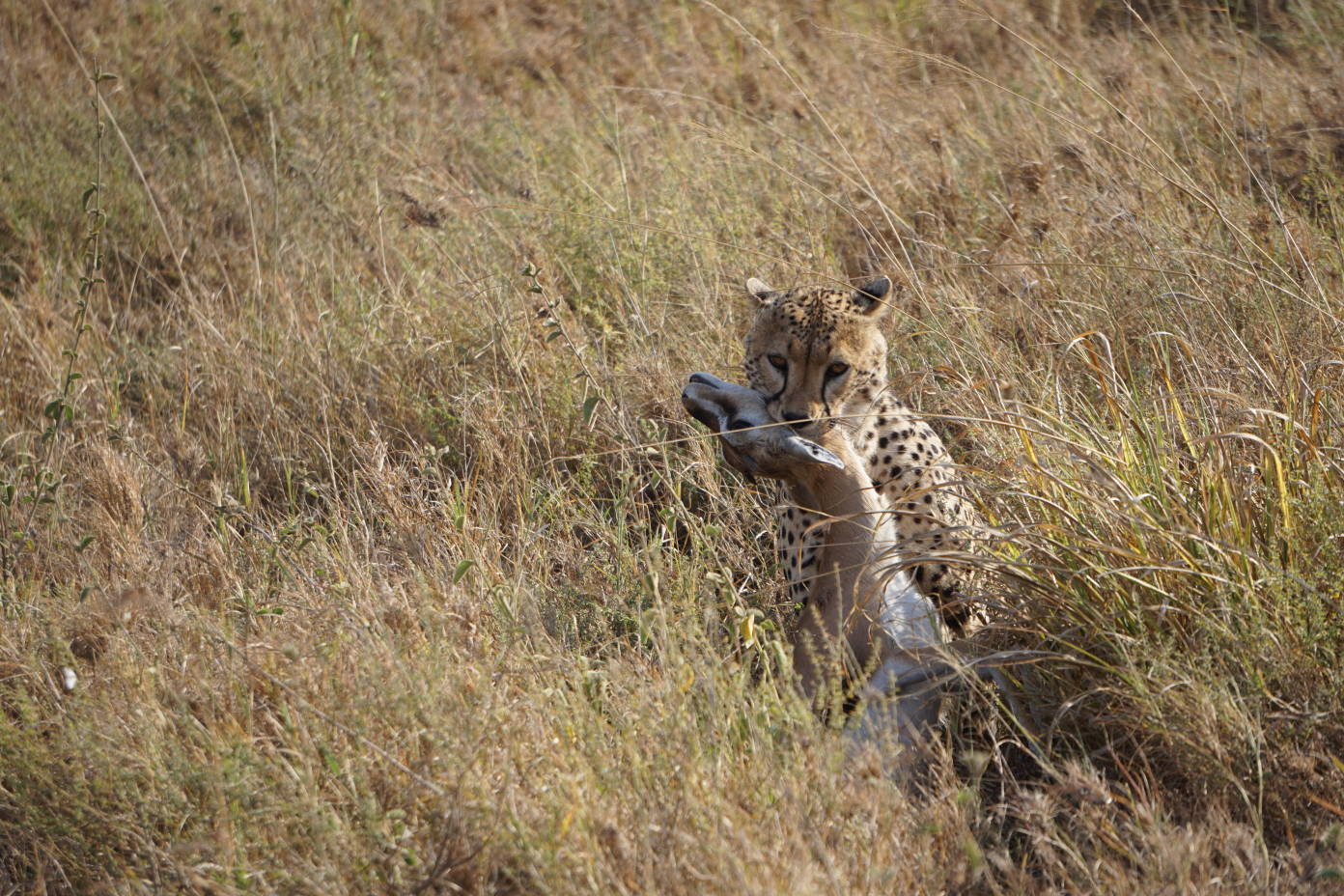 Empezamos el día subiendo y bajando al cráter Ngorongoro, comemos allí y por la tarde llegamos a Serengeti. Durante el trayecto vemos monos, cebras, ñus, avestruces, búfalos, leones y leonas, chacales, gacelas, hienas, facóqueros, jirafas, elefantes, monos verdes, antílopes y hasta un guepardo.