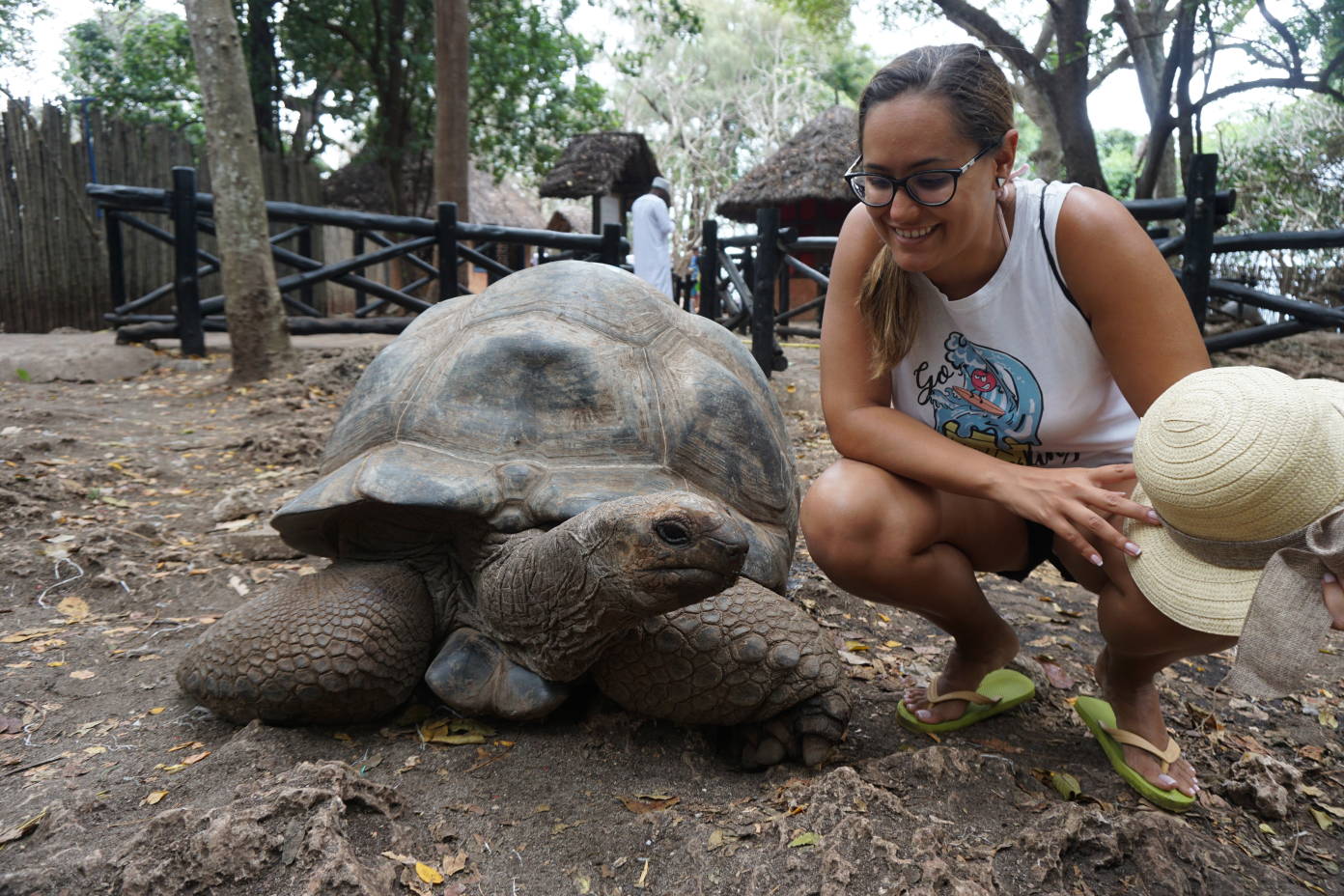 El día está nublado, pero hace calor, así que aprovechamos la mañana para visitar el acuario de Mnarani situado al norte de Nungwi. Este acuario de tortugas marinas ofrece la posibilidad de dar de comer a las tortugas que se encuentran en una piscina de coral natural.