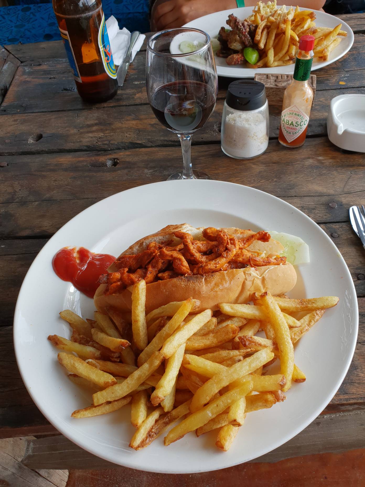 Caminando hacia el norte, encontramos la playa más frecuentada por locales y de camino al acuario de tortugas vimos zonas con isleños construyendo los barcos que usan para pescar y para las excursiones. La comida la hicimos en el Gerry’s Bar & Restaurant situado al lado del hotel. Todo está buenísimo pero es el restaurante más lento en el que hemos comido nunca. Siendo los únicos comensales, llegamos a esperar hasta 1 hora la comida.