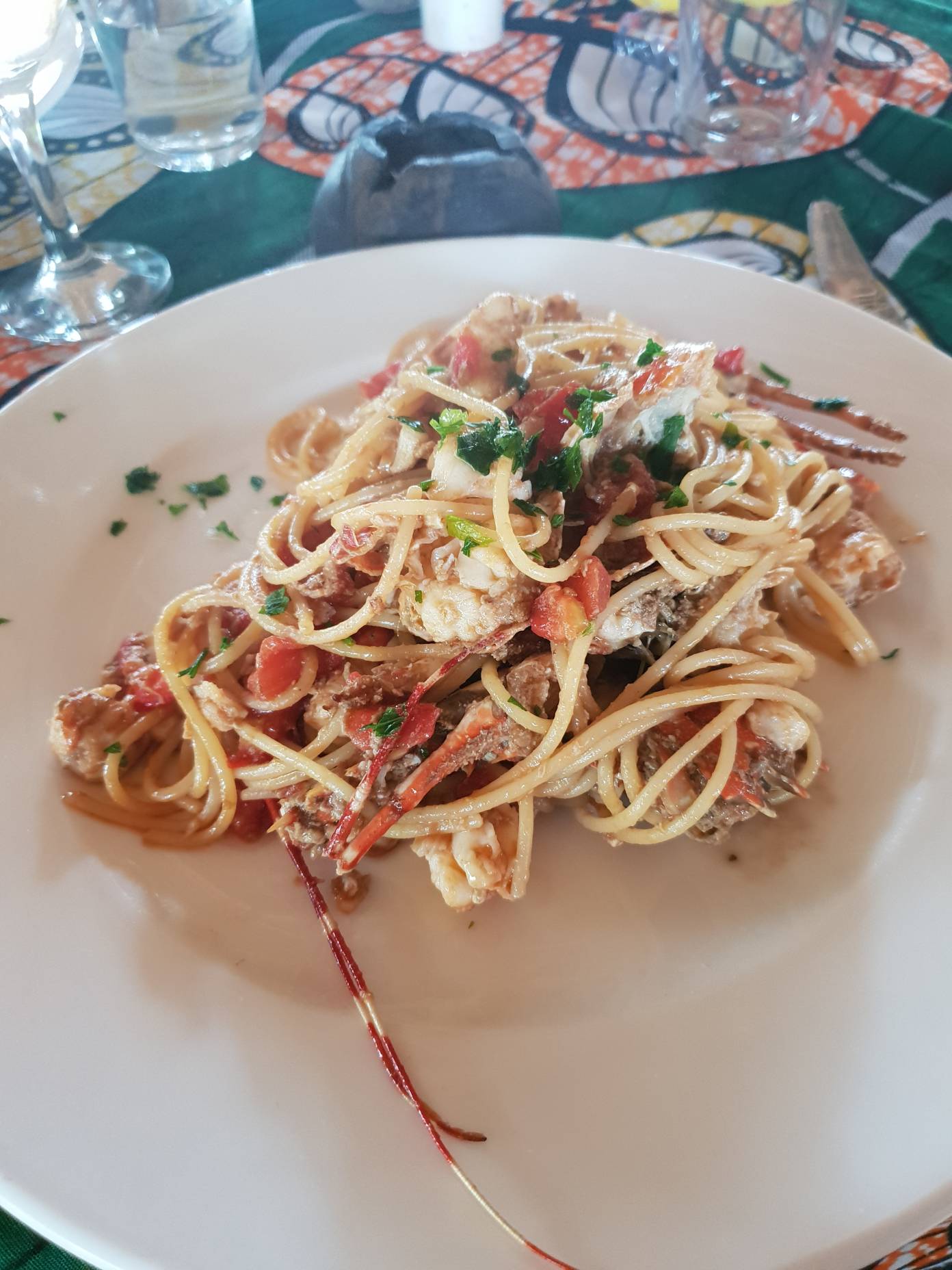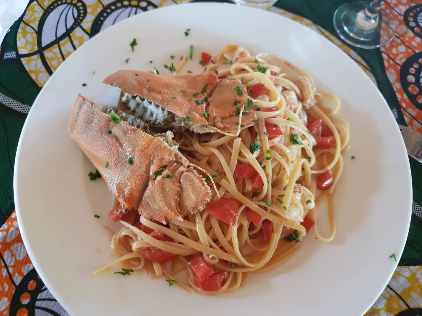 La comida de hoy la hacemos fuera del hotel y de la playa, nos adentramos en el pueblo de Nunwgi y comemos en el restaurante italiano L’Ombeliko del Mondo (ahora llamado Kibanda Lodge), frecuentado por muchos italianos que visitan la isla y con excelentes comentarios. Comimos pasta con langosta y cigala. ¡Riquísimo!
