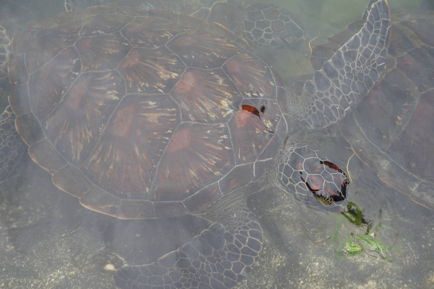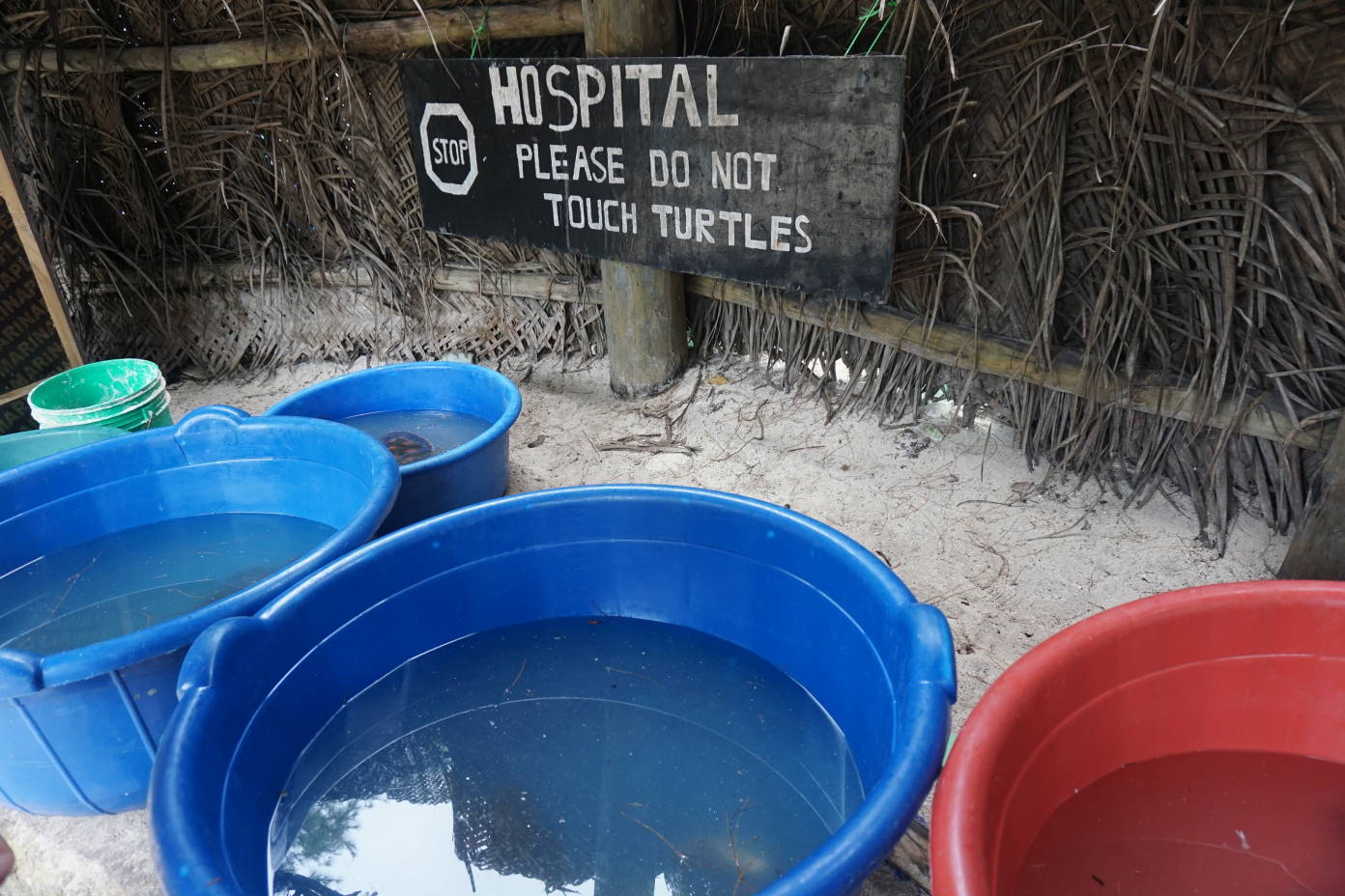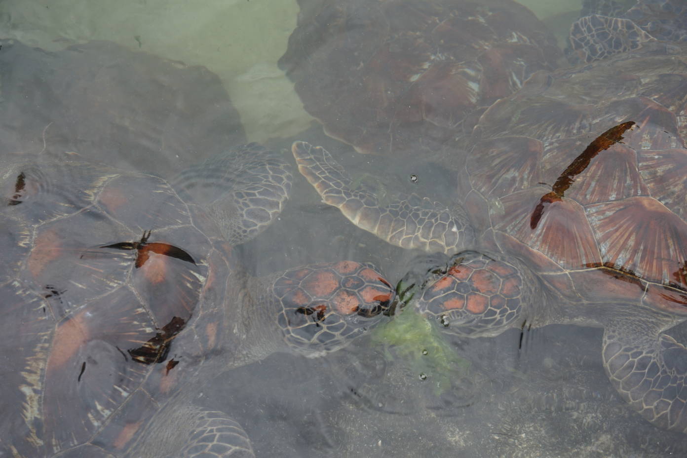 El día está nublado, pero hace calor, así que aprovechamos la mañana para visitar el acuario de Mnarani situado al norte de Nungwi. Este acuario de tortugas marinas ofrece la posibilidad de dar de comer a las tortugas que se encuentran en una piscina de coral natural. Según nos contaron, aquí es donde los pescadores traen a las tortugas enfermas para su rehabilitación y el día 20 de Febrero de cada año devuelven algunas de ellas al mar. La entrada son 10$ / persona.
