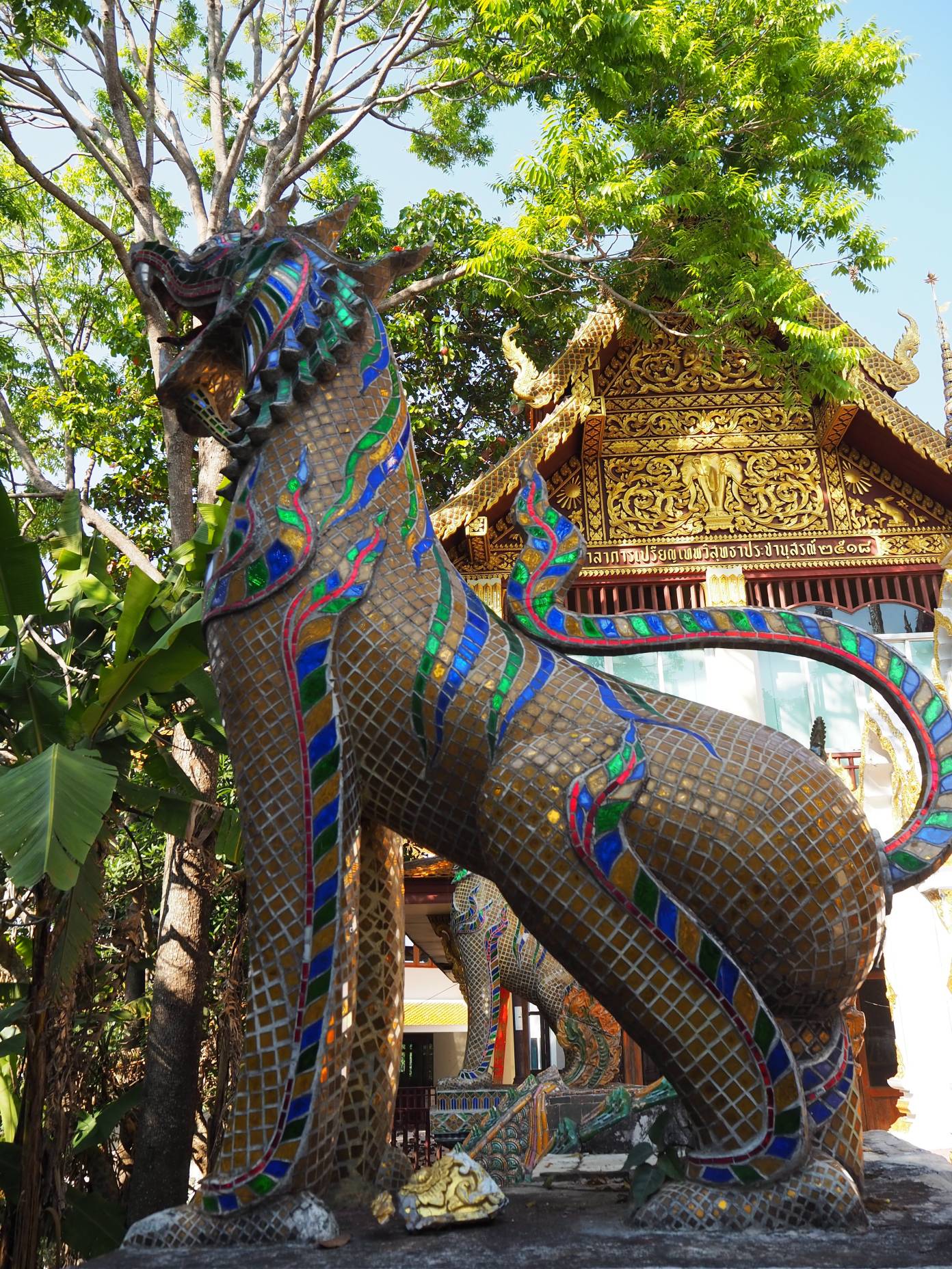 El templo está rodeado de pequeñas campanas (las cuales «dan suerte» si las tocas), murales que representan escenas de la vida de Buda, pequeños pabellones con tejados rojos y un mirador con espectaculares vistas de Chiang Mai.