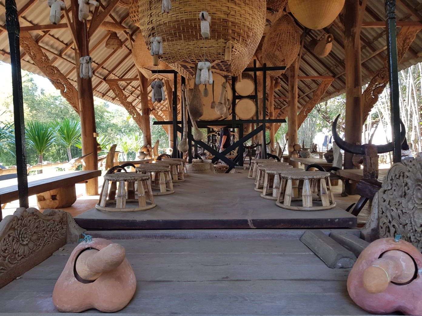 La mayoría de los edificios albergan una serie de instalaciones de objetos antiguos y nuevos. Algunos son locales, mientras que otros son máscaras africanas, influencias balinesas y birmanas y un montón de creaciones únicas.